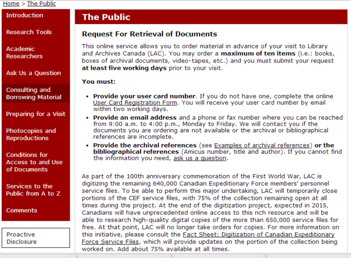 The process is straightforward, but time-consuming. Request the records you need prior to visiting Library and Archives Canada, if you can.