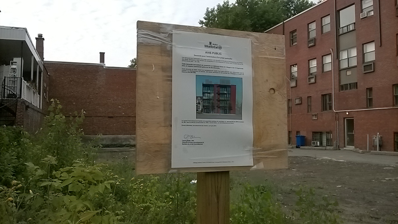 Last October, they made conditional deals to buy out Laberge and his next door neighbour to develop the entire corner. Both owners accepted, but Verdun’s CCU rejected the plan. The borough considers Laberge’s home, which dates from 1897, an important heritage site. (Note: Montreal’s tax rolls show Laberge’s home as being built in 1942, which would make the structure significantly younger than it is. The tax roll date stems from a zone change made on September 8, 1945 that allowed a small addition to the back of the property.)