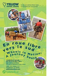 For more information about both organizations, refer to their websites at http://yellowdoorchoir.com and http://www.cyclonordsud.org.